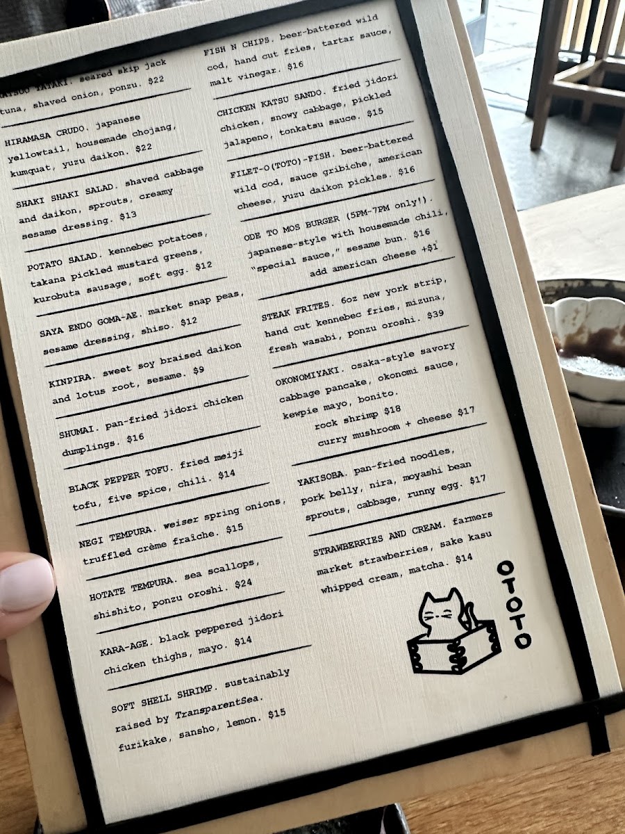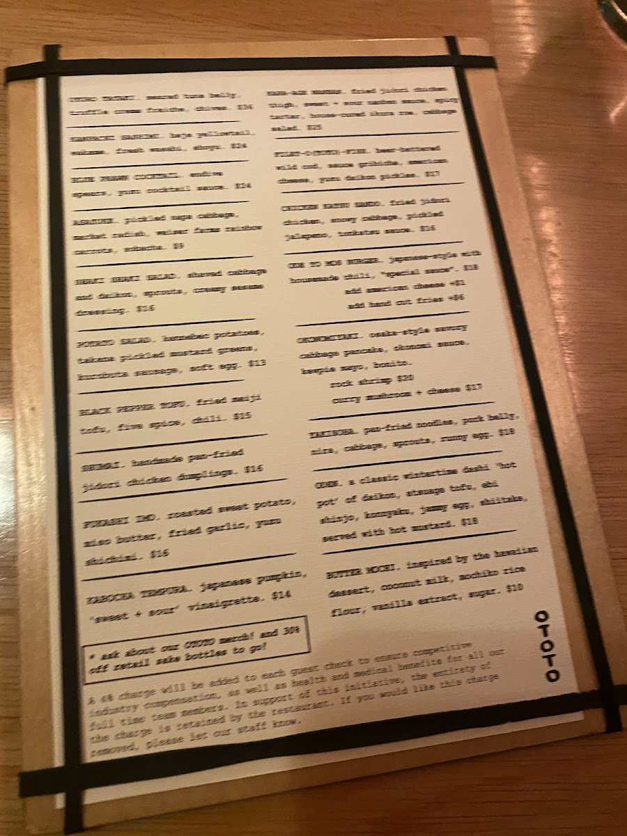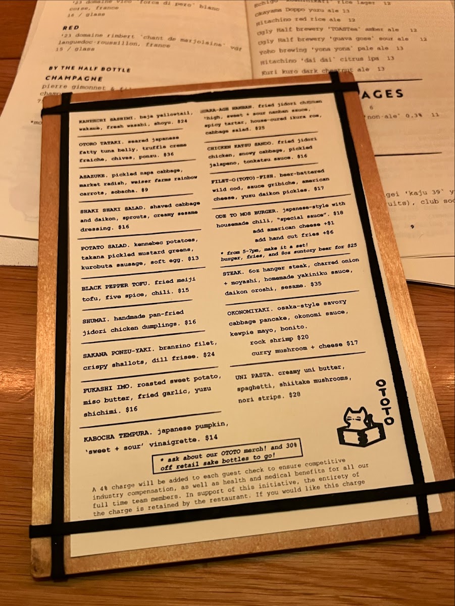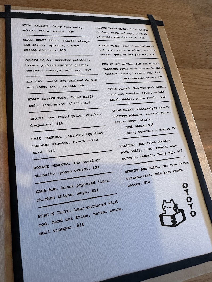 At Ototo, the menu reflects a blend of culinary artistry and flavorful tradition. With an emphasis on fresh ingredients and bold flavors, each dish is crafted to offer something truly special. Whether you’re in the mood for a savory appetizer or a hearty main course, Ototo’s offerings cater to all tastes. From expertly grilled meats to vibrant, veggie-filled dishes, the menu is designed to surprise and delight with every bite. Expect a creative mix of classic favorites and new twists, all prepared with a focus on high-quality ingredients. There's no rush here, just a laid-back atmosphere to enjoy your meal and savor the experience. So sit back, relax, and explore the diverse flavors that make up the vibrant Ototo Menu.